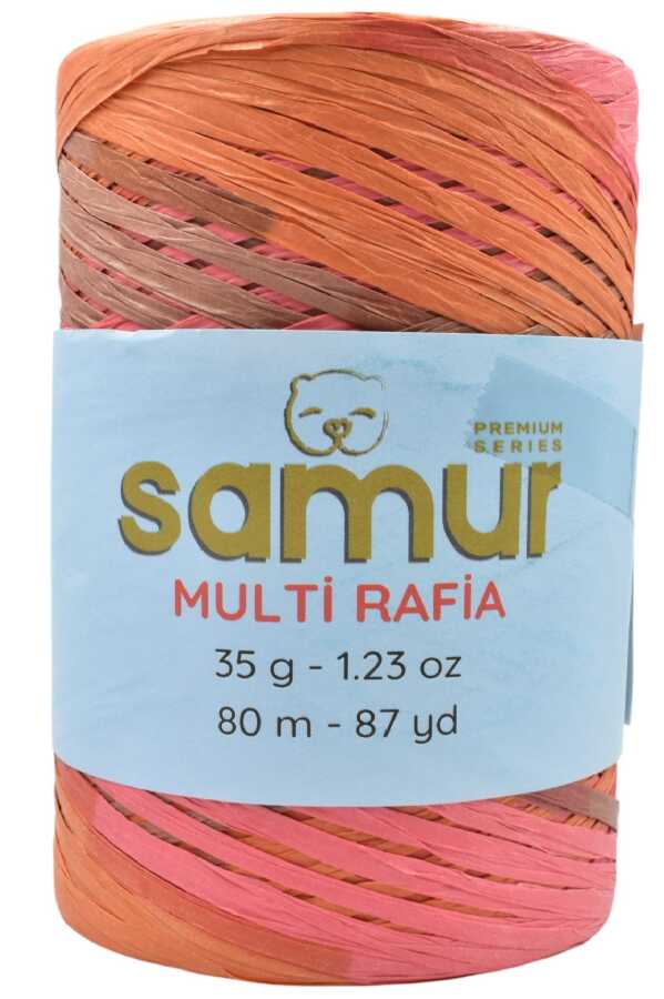 Samur Multi Raffia, doğadan ilham alan yapısıyla hem çevre dostu hem de görsel olarak zengin bir örgü ipidir. Hafifliği, dayanıklılığı ve ışıltılı renk geçişleri sayesinde ister yazlık çanta yapımında ister dekoratif projelerde hayal gücünüzü serbest bırakabilirsiniz.